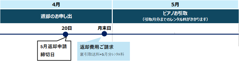 ピアノお届け日翌月1日がレンタル開始日、ご返却日当月末日がレンタル終了日となります。