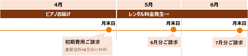 ※レンタル料金は月割計算です。※レンタル料金の発生はピアノお届けの翌月からとなります。